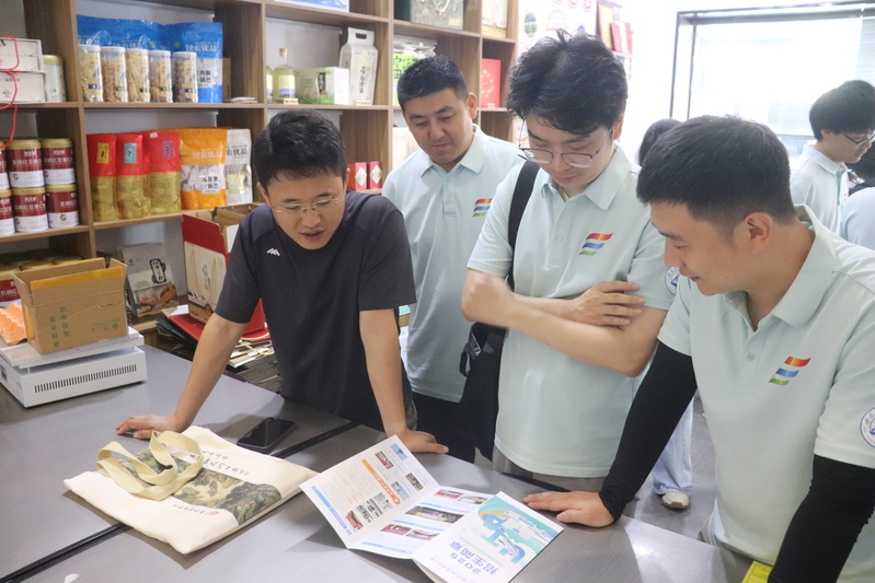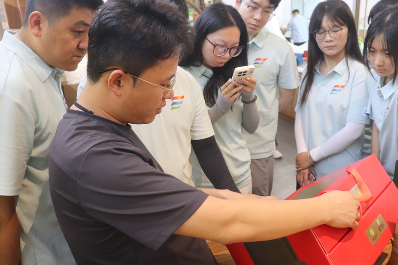 在泾县供销为农服务中心,公司负责人江志伟带领大家参观当地各品类茶叶及其他农副产品的包装设计样品。江志伟对实践团为公司设计制作的黄精茶、泾县绿茶礼盒套装给予高度评价,充分肯定其在美学设计上的创新与突破。同时,他也结合实际生产需求,提出包装设计的优化建议。他强调,农副产品包装设计需严格遵循行业规范,从产品条形码、委托方信息的合规标注,到背标字体与包装尺寸的科学配比。不仅要突出产品的实用价值与文化内涵,更要精准把握目标消费群体的情感需求,以此确定设计方向,实现包装效果的最优化。
