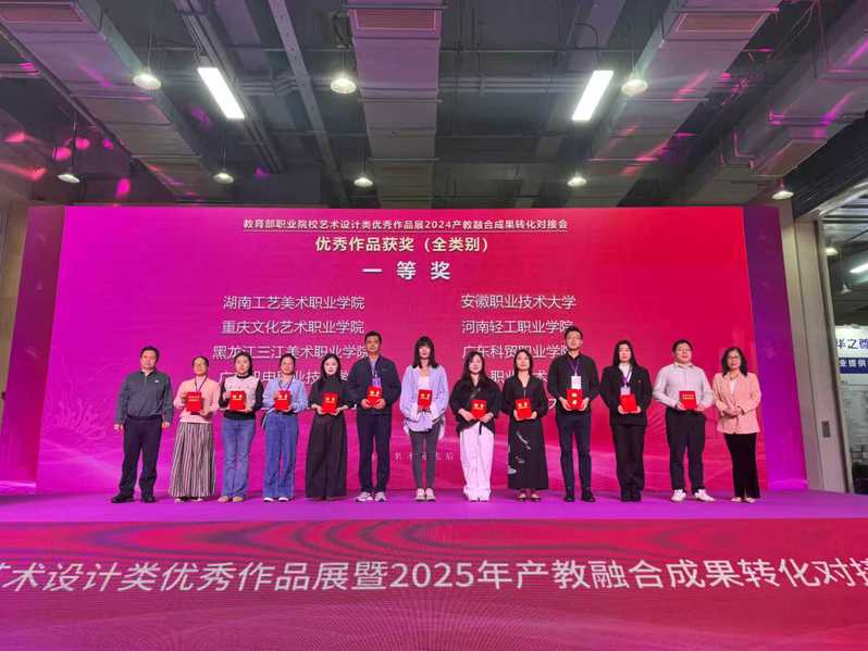 1113日至16日,由教育部职业院校艺术设计类专业教学指导委员会主办的“全国职业院校艺术设计类优秀作品展暨2025年产教融合成果转化对接会”在广州举行。76net必赢线路检测中心艺术与创意学院师生凭借扎实的专业功底、创新的设计理念与深度的产教融合实践,在全国百余所院校万余件作品的激烈角逐中脱颖而出,最终收获一、二、三等奖项,全方位彰显了职业教育艺术设计专业的育人成效与师生风采。