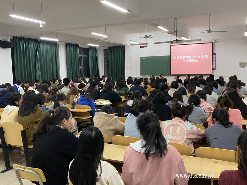 为进一步落实财经商贸学院党员教师联系班级,为学生排忧解难,10月21日晚上,财经商贸学院在教E403召开了21级会计专升本学生座谈会。财经商贸学院院长王培俊、会计教研室主任马亚平、会计专业教师金莎以及21级会计专升本班班主任和全体本科生参加了会议。