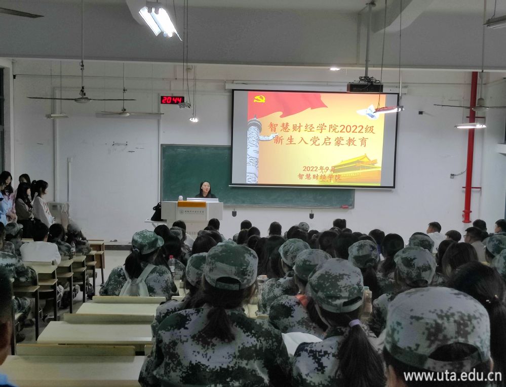 为进一步引导新生坚定理想信念,筑牢思想根基,积极听党话、跟党走,以奋进姿态迎接党的二十大胜利召开,9月23日晚,智慧财经学院在电教楼102教室开展新生入党启蒙教育,学院团总支书记钟静、学生党员代表、团学干部代表及全体2022级新生参加本次活动。