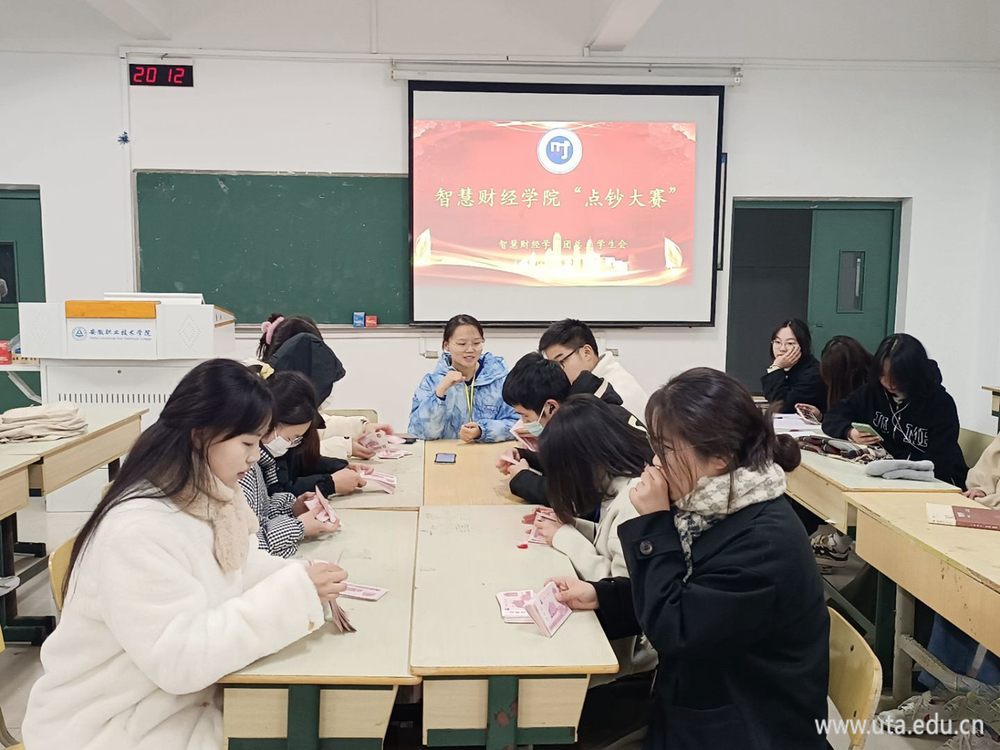 学习出新知,实践长才干。为营造良好的学习氛围,激发同学们专业学习的兴趣和热情,丰富同学们的课余生活,12月8日晚,智慧财经学院在教D503举行趣味点钞大赛,学院2022级全体同学及2021级部分同学参加活动。