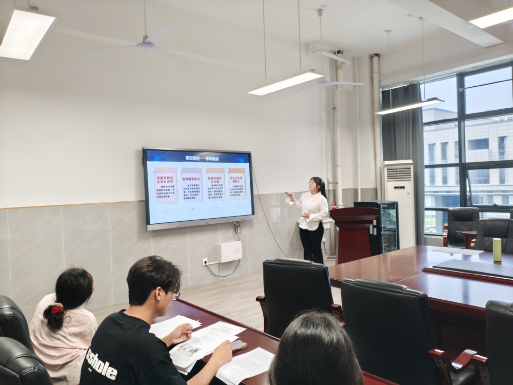 为激发学生创新活力,遴选优秀项目参加大学生创新大赛,6月9日,智慧财经学院开展安徽省大学生创新大赛(2025)院级选拔赛。本次比赛评审团由学院五位教师组成,专职辅导员李建新主持赛事。