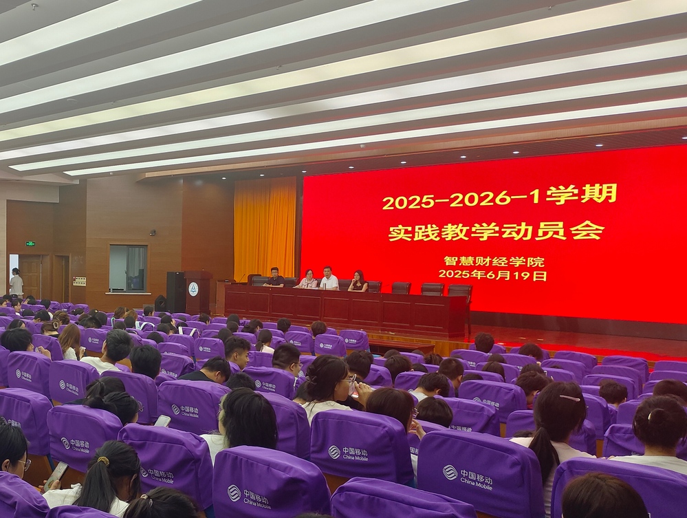 6月19日,智慧财经学院在图文信息中心三楼报告厅召开2023级实践教学动员会,学院党政班子成员、辅导员代表及2023级全体学生参加了会议。会议由汪洪斌主持。
