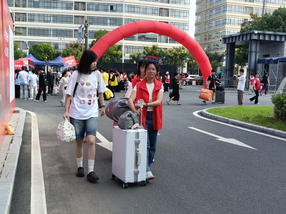 奋进元年,遇见新你。报到当日,学院安排50余名志愿者投身迎新一线,为新生提供从入校指引、行李搬运到注册入住的全流程“一对一”暖心服务。志愿者们热情引导、耐心解答、主动协助,高效完成各项手续办理,并发放学院精心准备的迎新物资包。一声声“同学请跟我来”、一次次伸手搬运沉重行李,成为校园中最动人的风景,迅速消融了新同学们初来时的陌生与不安。