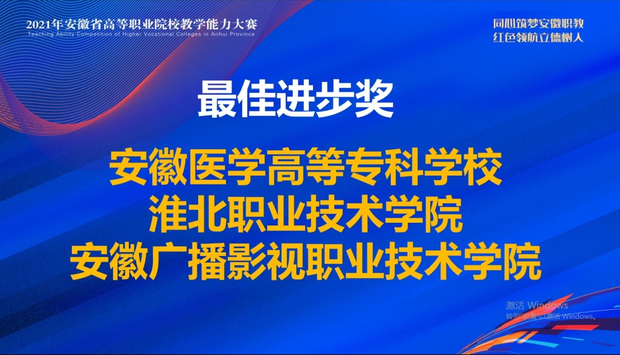 近日,省教育厅公布了2021年安徽省高职院校教学能力比赛获奖名单。安徽广播影视职业技术学院选派出43位老师组成11个团队参加省赛,经过初赛和现场决赛的奋力拼搏、披荆斩棘,共获得一等奖2个,三等奖3个,学院获得“最佳进步奖”。