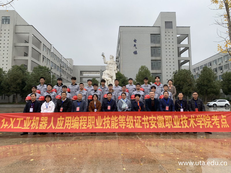 11月21、22号,安徽省首批“1+X”工业机器人应用编程职业技能等级认证考试在安徽职业技术学院机电工程学院顺利开考,共有19名工业机器人技术专业学生参加认证考试。党委副书记、院长孙敬华亲临考核现场指导工作,实训中心负责人冯本茹,机电工程学院负责人洪应现场督考。