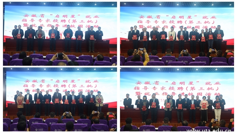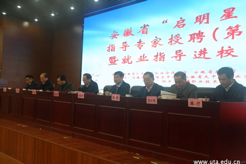 10月19日上午,省级“启明星”就业指导团专家(第三批)授聘暨就业指导进校园活动在安徽职业技术学院顺利举办。省人社厅一级巡视员唐正亮出席活动并讲话,安徽职业技术学院党委副书记、院长孙敬华出席活动并致辞。省人社厅就业失业处处长程宗录,省人才服务中心主任吴传华,省教育厅高校学生处处长陈锋,省大中专毕业生就业指导中心主任袁江林,团省委青少年发展和权益维护部部长陈永刚,安徽职业技术学院党委委员、副校长陈行等领导出席活动。来自省内外的省级“启明星”就业指导专家、学院就业指导课程授课教师及150余名学生代表参加会议。会议由程宗录主持。