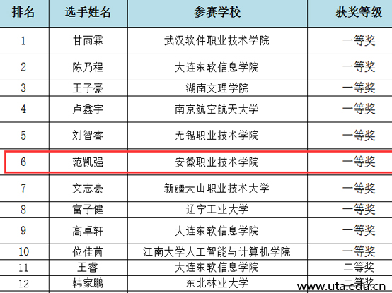 决赛中,范凯强同学在与中国矿业大学、东南大学、南京航空航天大学、南京理工大学、电子科技大学等国内“双一流”高校的优秀选手同台竞技,最终取得了全国第6名的优异成绩,成功夺得了金牌,充分展现了安职学子不畏强者、顽强拼搏、奋勇争先的竞技精神。
