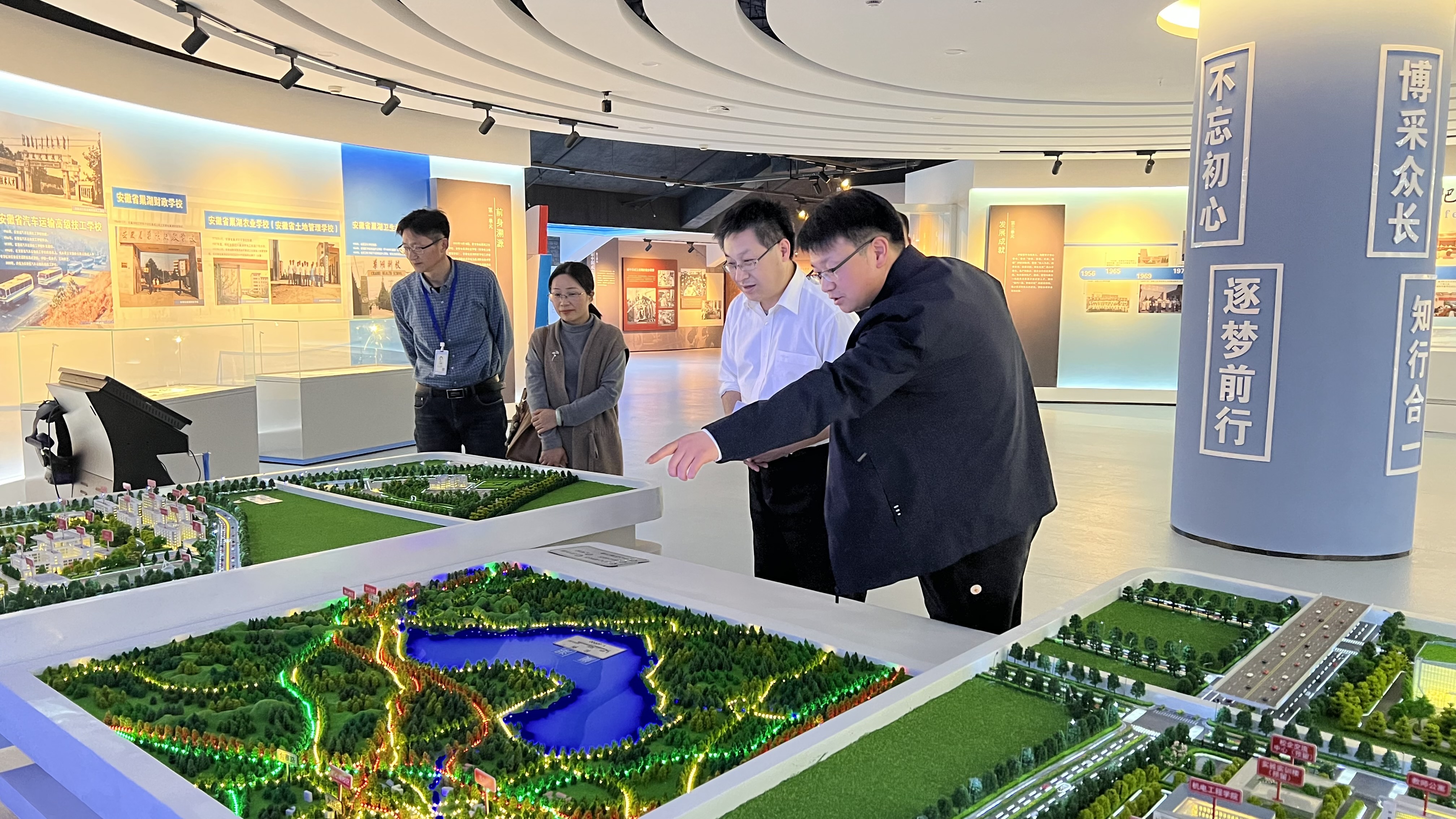 交流会前,安徽汽车职业技术学院领导一行参观了合肥职业技术学院校史馆,了解校史馆的设计理念、建设过程,重温了职业教育的历史,也了解了合肥职业技术学院的发展历程。