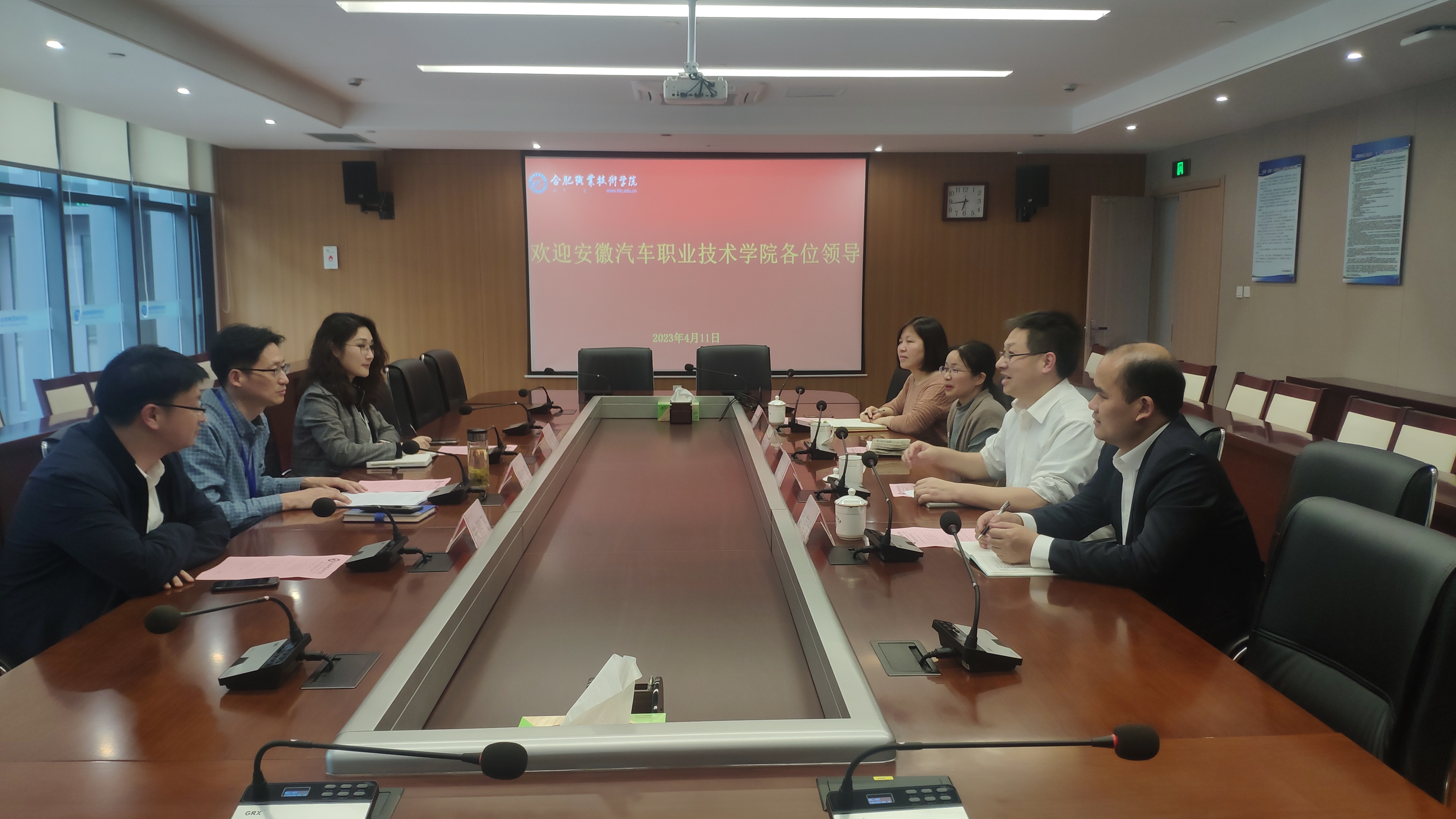 4月11日下午,安徽汽车职业技术学院党委委员、综合处处长张泳,教务处处长卢晓玲,教务处副处长赵有金,人事主管王冬梅一行4人前往合肥职业技术学院,就教学管理、合作办学、教师能力提升、人才培养成功经验等方面进行参观交流。