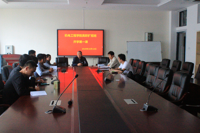 10月13日,机电工程学院在电气楼414会议室举行2019级社招班新生入学“开学第一课”活动,副院长张栩、部分专业课老师、全体班主任参加了本次活动。