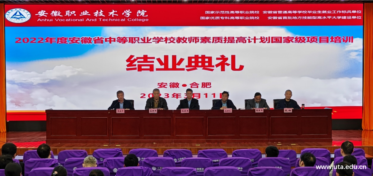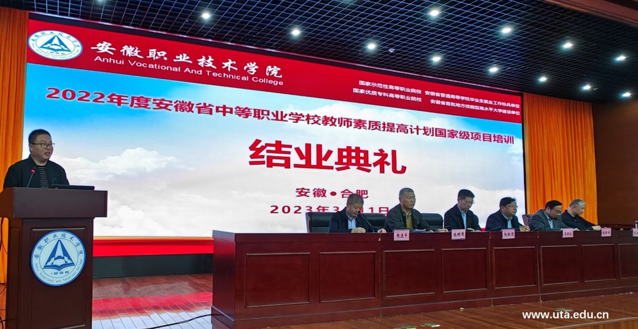 3月11日上午,学院在图文信息中心三楼学术报告厅举行2022年度安徽省中等职业学校教师素质提高计划国家级项目培训班结业典礼。学院党委委员、副院长杨林国出席结业典礼并讲话。学院办公室主任吕时礼,智能制造学院党政负责人,培训班教师代表、班主任和来自全省70多所中职学校的140余位学员参加了典礼。典礼由智能制造学院党总支副书记郝进平主持。
