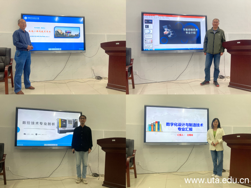 本次“专业负责人说专业”活动,先由机电一体化教研室负责人孙忠献介绍机电一体化技术专业,孙忠献从培养方案制定、机电专业人才培养目标、专业课程体系以及专业规划和建设方向等内容进行了详细讲解;随后,智能控制教研室负责人马卫民、智能装备教研室负责人蒋强和产品设计与制造教研室负责人王菊线分别汇报智能控制技术专业、数控技术专业和数字化设计与制造技术专业的建设情况,三位教师重点汇报了相关专业的行业背景、人才培养目标、专业办学条件及就业需求岗位等内容。