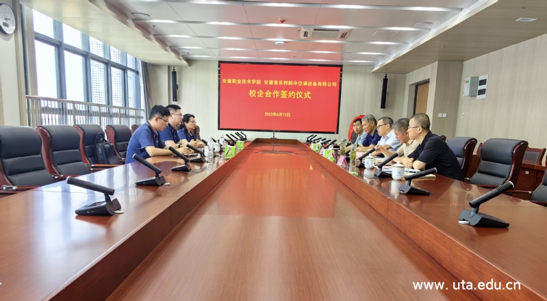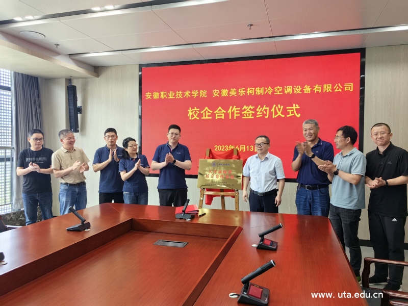 (智能制造学院通讯员 崔伟) 为深化校企合作、产教融合,科教融汇,6月13日下午,必赢与安徽美乐柯制冷空调设备有限公司进行校企合作签约暨授牌仪式,仪式在至公楼第五会议室举行。院党委副书记、院长盛鹏,安徽美乐柯制冷空调设备有限公司副董事长陈杰、企管总监李群等出席会议,智能制造学院党政领导参加会议。签约暨授牌仪式由智能制造学院副院长桂树国主持。