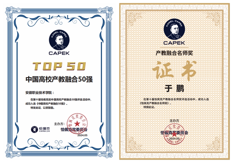恰佩克奖(The Capek Prize) 是根据捷克科幻小说家,“robot”一词创造者卡雷尔·恰佩克 (Karel Capek) 的名字命名、恰佩克奖励委员会主办的奖项,始创于 2014年,旨在奖励在机器人领域作出贡献的组织和个人,致力于做机器人行业发展的见证者,打造机器人行业的“诺贝尔”。目前,恰佩克奖是我国机器人领域内最重要、含金量最高的奖项,在行业内极富影响力和公信力。“中国高校产教融合50强”是本届恰佩克奖为在机器人行业作出重要贡献的高校组织设立的奖项。