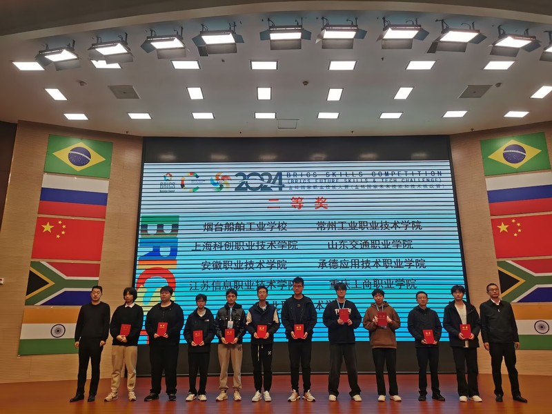 近日,2024金砖国家职业技能大赛(金砖国家未来技能和技术挑战赛)国际总决赛工业机器人数字孪生技术应用赛项在辽宁机电职业技术学院举行,来自国内外60支参赛队伍同台竞技。本赛项不设组别,我院教师杜选福、学生张啊洋共同组队,教师李能菲、黄琼担任指导专家。经过激烈角逐,我院代表队荣获国际总决赛二等奖和“优秀指导教师”荣誉称号。