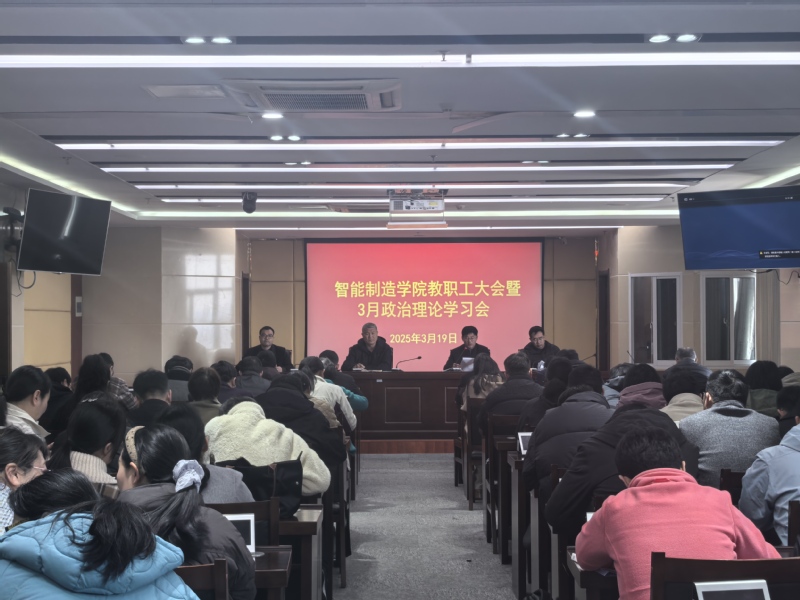 3月19日,智能制造学院在图文信息中心召开3月份教职工大会暨政治理论学习会,学院领导班子章斌、桂树国、常辉、张作胜出席会议,全体教职工参加会议,会议由章斌主持。