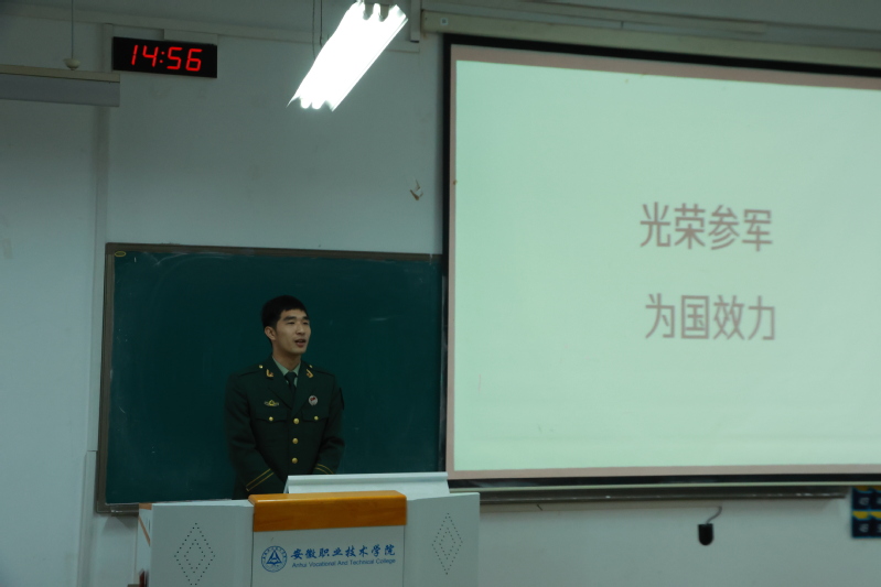 在宣讲现场,退役大学生士兵姜志强结合自身在军营中的亲身经历,生动讲述了从校园走向军营的蜕变过程,话语中满是感慨:“参军,不仅是个人无上的荣耀,更是整个家庭的骄傲,是为社会增光添彩。”姜志强同学通过PPT,详细解读大学生入伍优惠政策,学业支持、经济补助、就业保障等内容。