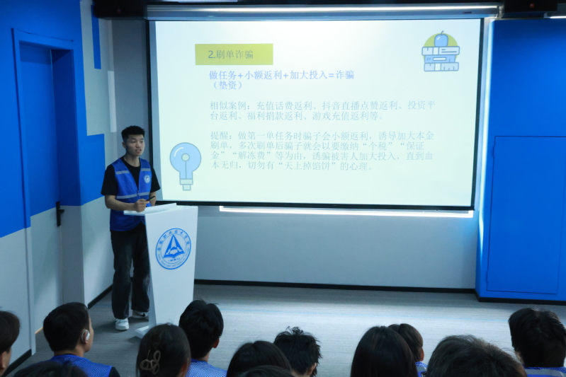 活动现场,反诈宣传人员通过生动有趣的案例讲解,深入浅出地剖析了常见的电信诈骗手段,从“网络刷单骗局”到“冒充公检法诈骗”,再到花样翻新的“校园贷陷阱”,让同学们直观认识到电诈的危害与狡猾之处。除了知识讲解,宣传人员还准备了反诈知识问答环节,学生们踊跃举手,积极抢答,在轻松愉快的氛围中进一步巩固了反诈知识。