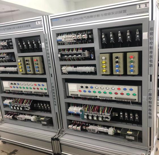 电气故障诊断与维修实训室是集教学、培训、考核为“一体”的综合实验实训平台。实训室的配置和技术水平处于省内同类院校领先水平,用于服务在校师生教学、科研的同时,可用于承担服务社会及企业各类培训和技能考核。