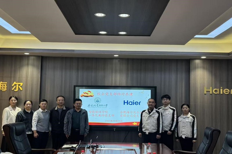 会后,机电一体化教师党支部与合肥海尔洗衣机有限公司党支部开展结对共建,通过党建引领进一步强化校企合作,提升实践教学质量。合肥海尔洗衣机党支部纪检委员刘光璞部长介绍了企业党支部建设情况。他表示,企业党支部始终坚持党建与生产经营深度融合,常态化开展组织生活会、技能攻坚等活动,构建起“党建强、发展强”的良好格局。机电一体化教师党支部书记谢晓敏介绍了学校发展与专业建设情况,重点围绕全国党建样板支部、全国高校“强国行”行动团队及全省五星党支部等党建品牌的特色做法和相关建设情况做了分享交流。
