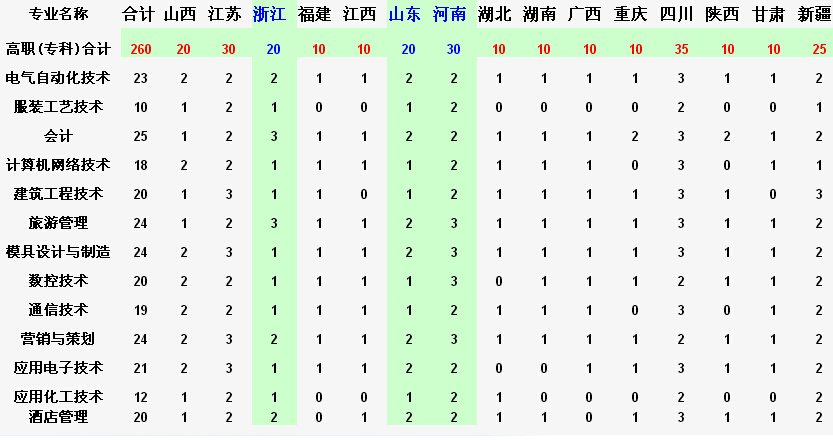 2015年安徽职业技术学院省外分专业招生计划