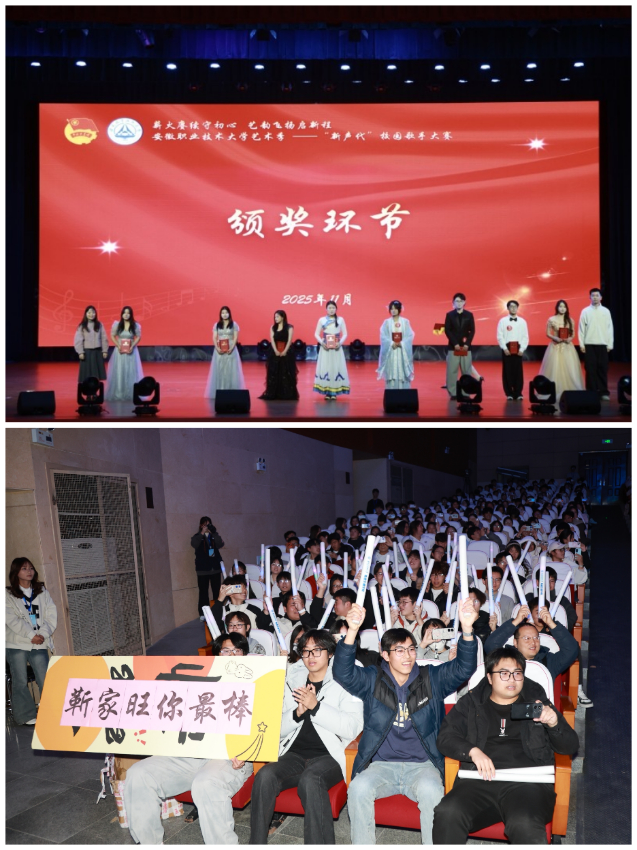 11月21日,学校2025年“艺术季”系列活动之“新声代”校园歌手大赛决赛在至立会堂圆满落幕。中专部靳家旺同学凭借过硬实力跻身决赛,中专部30名师生代表到场观赛,为选手加油鼓劲,共同见证这场青春洋溢的音乐盛宴。